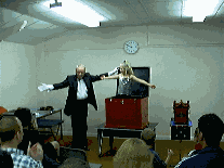 Emma helping EMAZDAD's Friend Chris Vincent with his SWORD BOX ILLUSION |